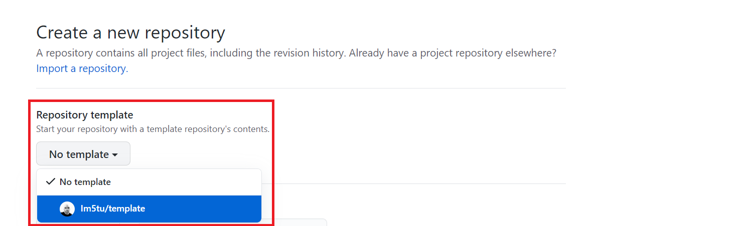 Once this is done, when you create a new repository, you can select the template as the source for this repository: